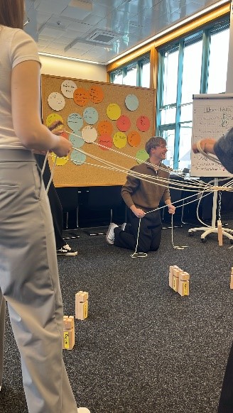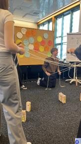 Ein echtes Highlight des Vormittags war das Teambuilding-Spiel „Tower of Power“. Dabei mussten wir gemeinsam einen Turm aus kleinen Bauteilen errichten und das ohne direkten Kontakt zu den Materialien! Nur mit einer speziellen Vorrichtung und durch gute Absprachen im Team war das möglich. Anfangs war es gar nicht so einfach, doch mit der Zeit wurden wir immer besser. Das Spiel hat uns gezeigt, wie wichtig Kommunikation, Geduld und gegenseitiges Vertrauen sind.