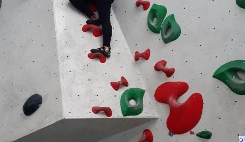 Unsere Gruppe begann mit dem Bouldern. Zuerst wurden uns spezielle Kletterschuhe ausgeliehen. Nachdem wir uns dann mit Hampelmännern, Kniebeugen und Dehnübungen ordentlich warm gemacht hatten, erklärte uns ein Trainer der Boulderhalle die Techniken und die Schwierigkeitsgrade der Boulderwand. Die Routen an der Wand werden hierbei anhand verschiedener Farben gekennzeichnet. Wir versuchten uns zuerst an den einfacheren Stellen und steigerten die Schwierigkeitsstufe immer weiter. Uns fiel auf, dass es dabei weniger auf die Armkraft ankommt, sondern vielmehr auf die Tritttechnik und die Koordination der Füße. Nachdem wir genug vom Bouldern hatten, war bei uns das Smoothie-Bike an der Reihe. Durch das Treten in das Pedal konnten wir uns hierbei unseren gesunden Smoothie selbst mixen. Zudem standen mehrere Smoothies zur Auswahl, wie zum Beispiel “Gurke-Kiwi“, “Erdbeer-Birne“ oder auch eine weniger leckere Kombination wie “Tomate-Paprika“. Zwischendurch konnten wir uns untereinander austauschen, Azubis anderer Betriebe kennenlernen oder auch Tischtennis spielen. Danach ging es für uns zu einer Präsentation, die im Nebengebäude der Boulderhalle von Vertretern der BARMER gehalten wurde. Uns wurden Lerntechniken und Übungen beigebracht, um ohne Stress durch Klassenarbeiten oder auch Prüfungen zu gehen. Wer das Ziel hat, die Prüfungen mit Bestleistungen abzuschließen, muss darauf achten, den wichtigen Lernstoff herauszufiltern, sich Lernpläne zu erstellen (zum Beispiel Mind-Maps und Übersichten), Prüfungsaufgaben durchzuspielen, aber bei alldem auch kleine Lernpausen einzulegen.