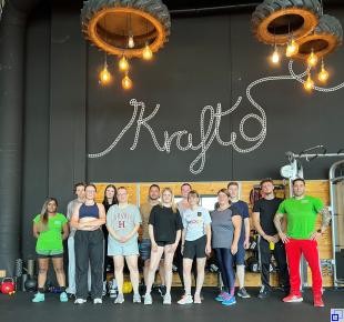 Das echte Fitnessabenteuer begann allerdings erst im Crossfit-Raum. Zunächst durften wir uns aufwärmen - oder anders gesagt: 90 Sekunden verzweifelte Versuche, unserem Trainer nachzumachen und dabei gut auszusehen😉. Hampelmänner, vor und zurück tippeln, und Seitenhüpfer, während wir versuchten, uns gegenseitig nicht umzurennen.
